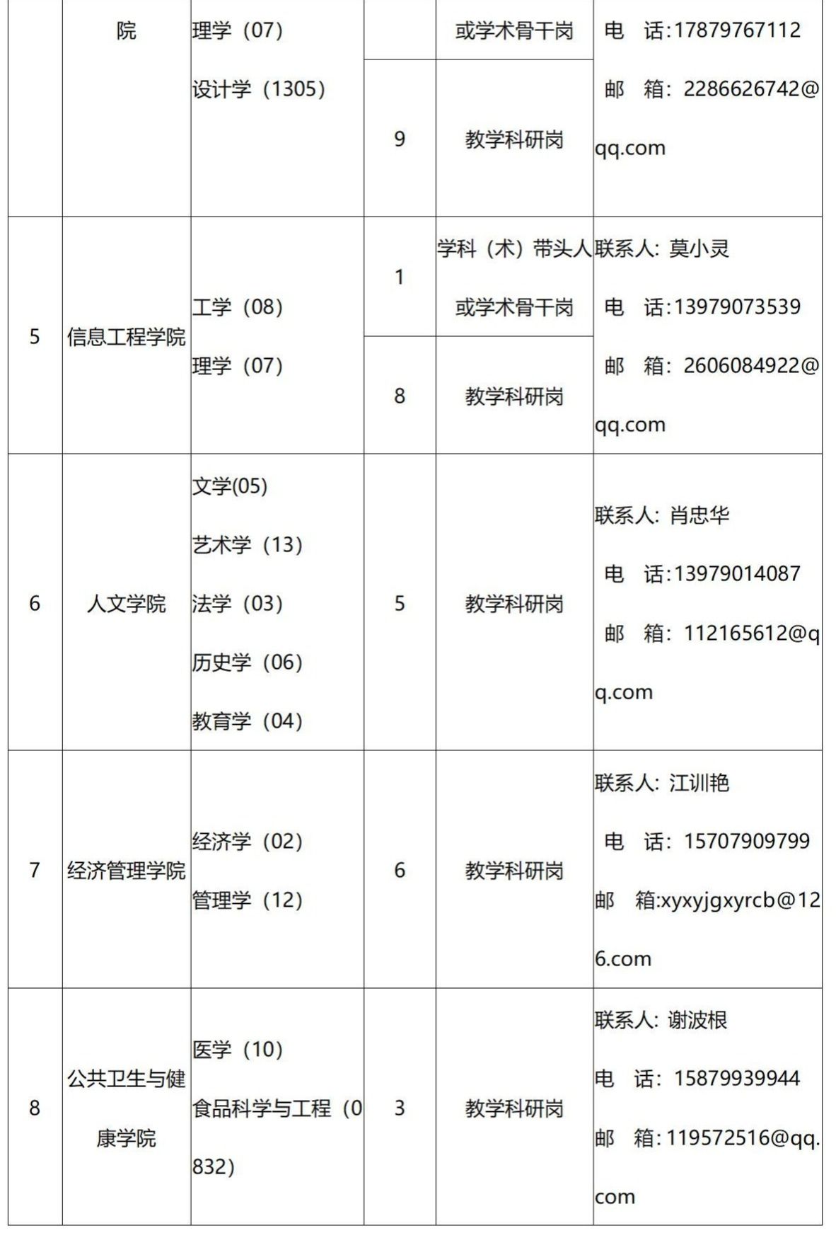 2.咨询电话:人事处咨询电话(0790-6666478),各学院招聘联系人、联系电话及联系邮箱见人才需求岗位信息表。